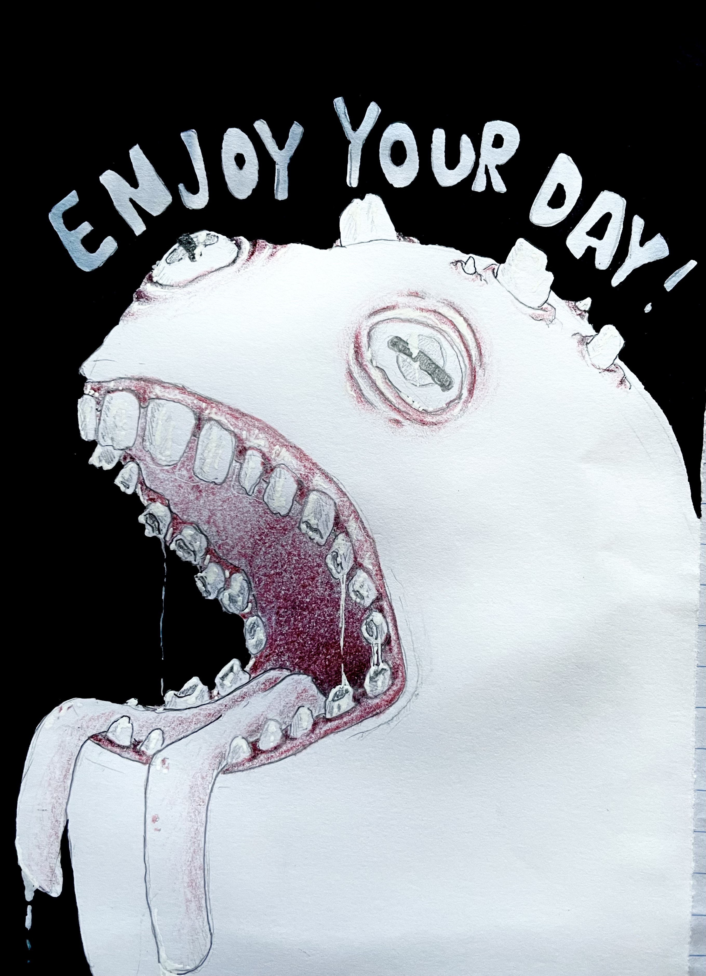 Celeste uses humor as a tool while drawing, often aiming to make herself laugh through her work. She sees art as a means to cope with her depression and anxiety by evoking emotion and relaying how she feels. Her work is not only visually compelling, but its power to resonate deeply with others who face similar struggles, offers emotional comfort.