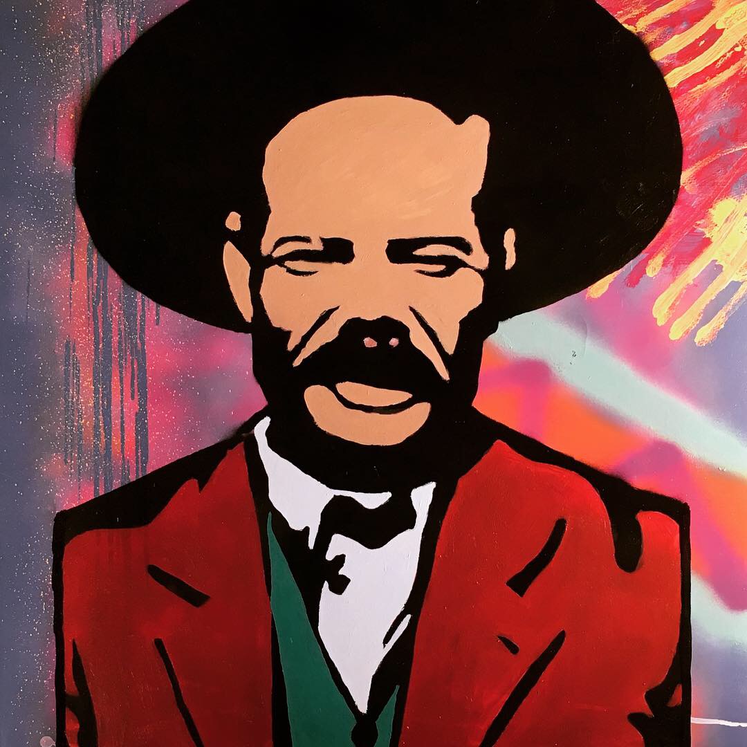 His portraits include historical figures, pop culture icons, family, and self‑portraits. He states that he paints “both awful and inspirational people.” If you’ve ever stumbled across his TikTok page, you’ll see that advocacy is a strong part of his messaging. He paints powerful real‑life heroes such as political activists and leaders who stand up for justice.