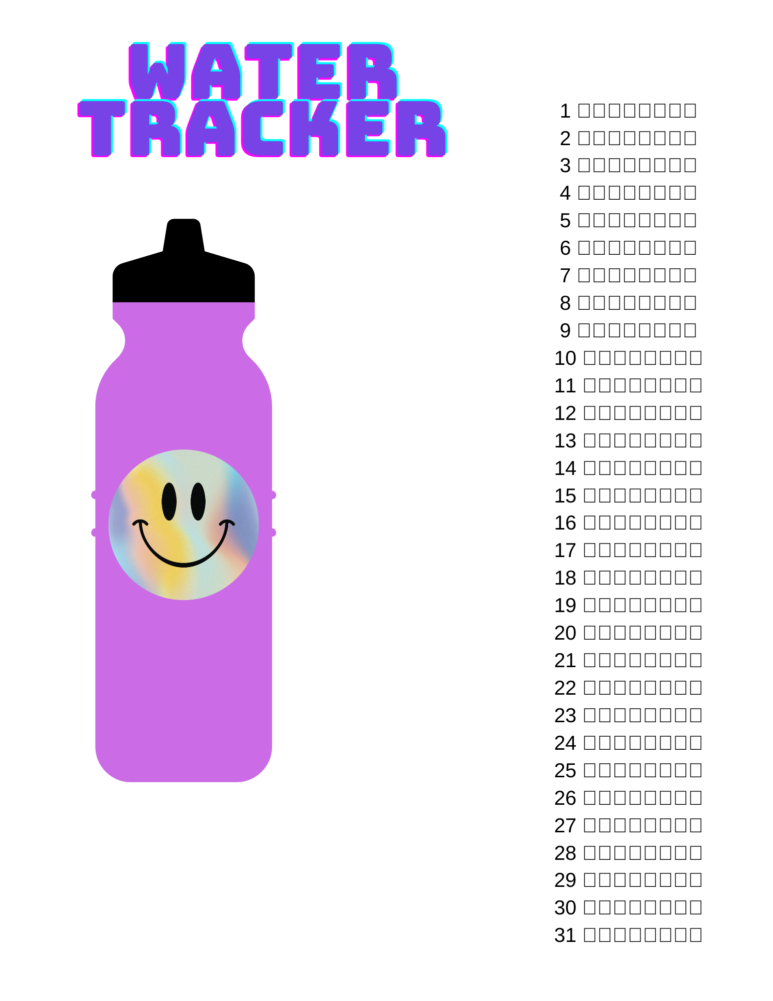 Print this cute water tracker to help you stay hydrated all month long.
